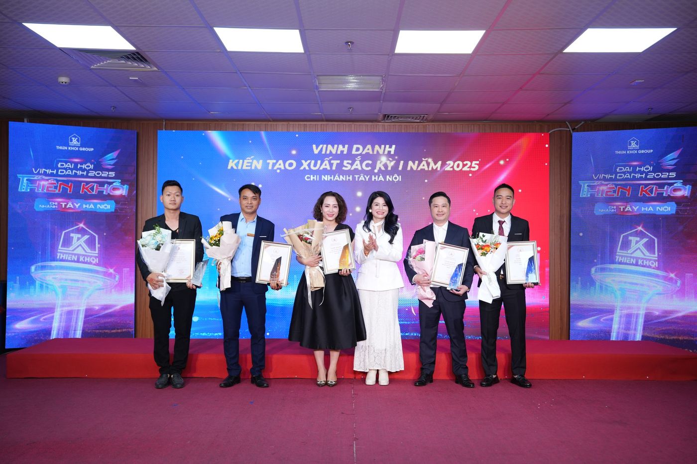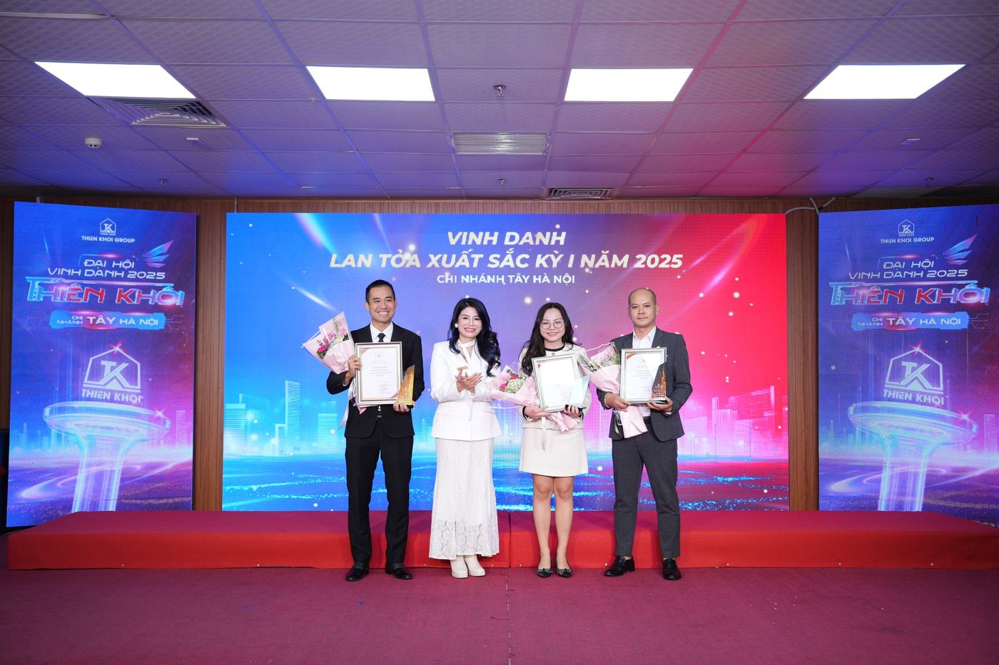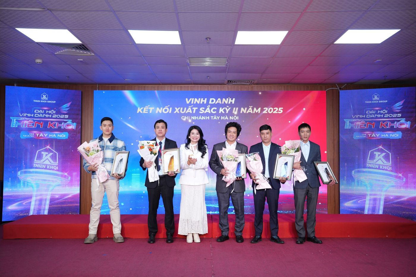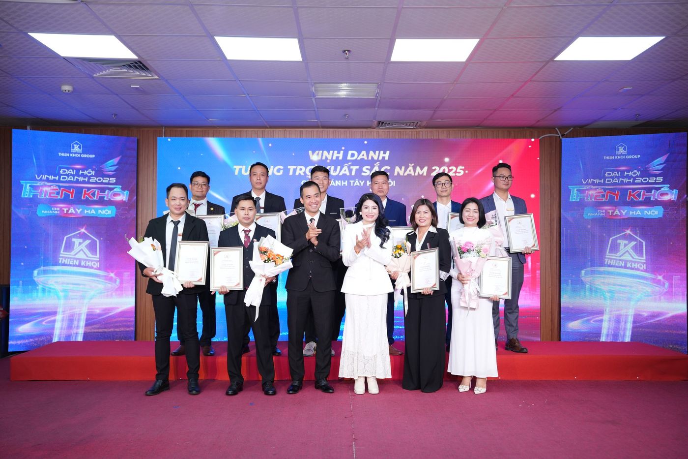 Trong năm 2025, Chi nhánh Tây Hà Nội ghi nhận nhiều kết quả tích cực trên hai phương diện: hiệu quả kinh doanh và công tác đầu tư. Những đóng góp ấy đã được tôn vinh tại Đại hội thông qua 7 hạng mục vinh danh, với 20 giải thưởng dành cho 137 cá nhân xuất sắc – những nhân tố xuất sắc góp phần tạo nên vị thế của Chi nhánh trong toàn hệ thống Thiên Khôi Group nói riêng và thị trường Bất động sản Thổ cư, Nhà phố trong khu vực.