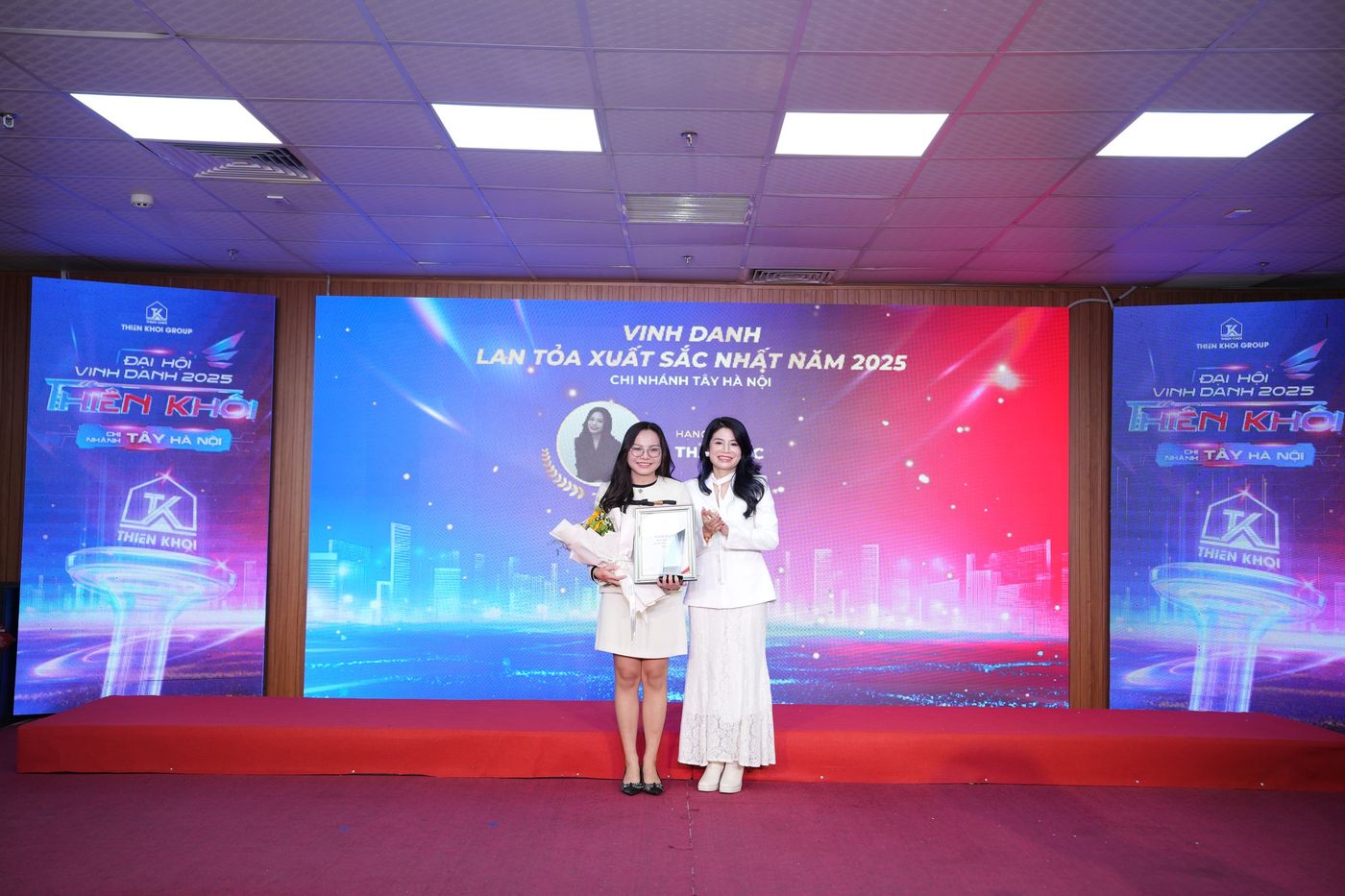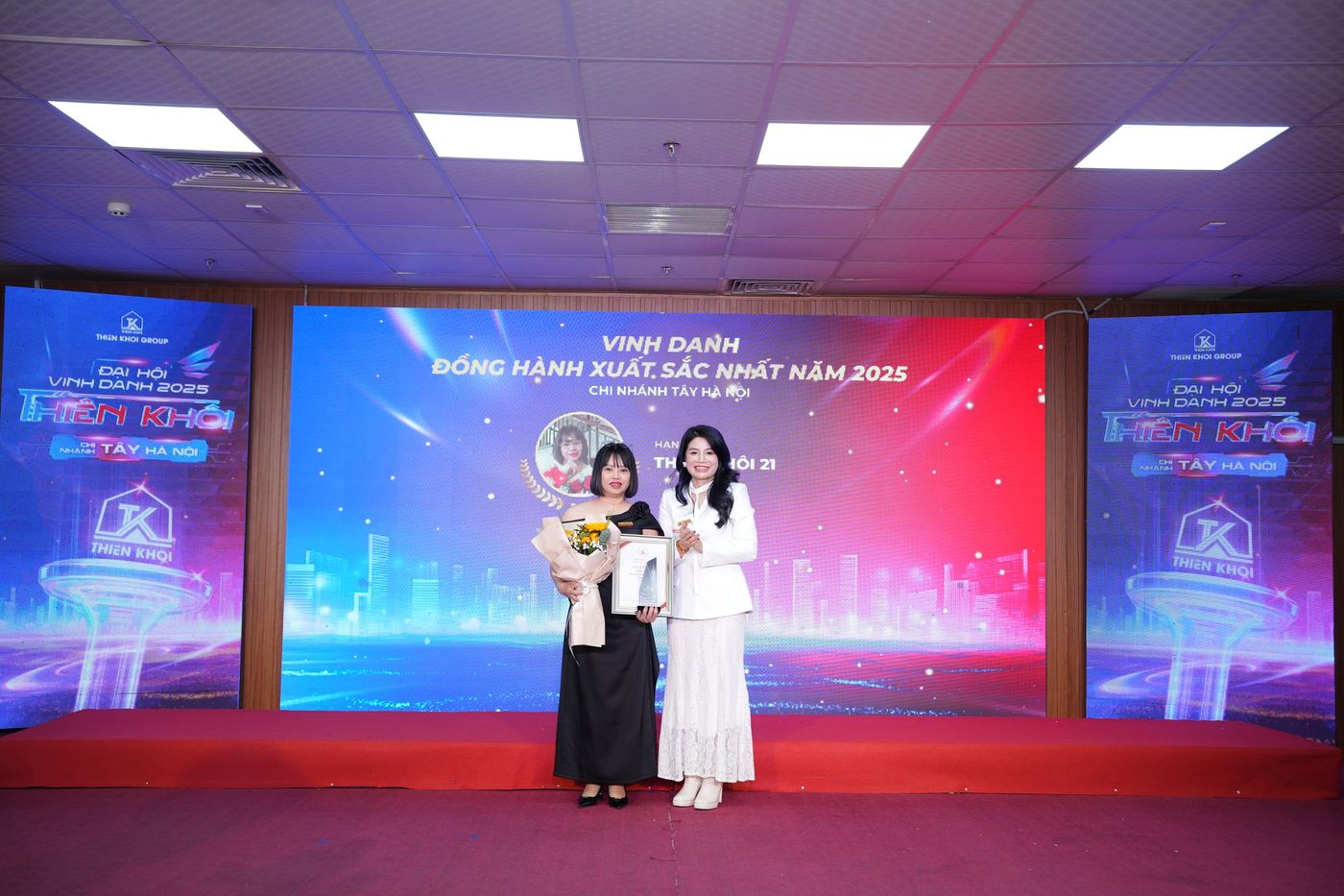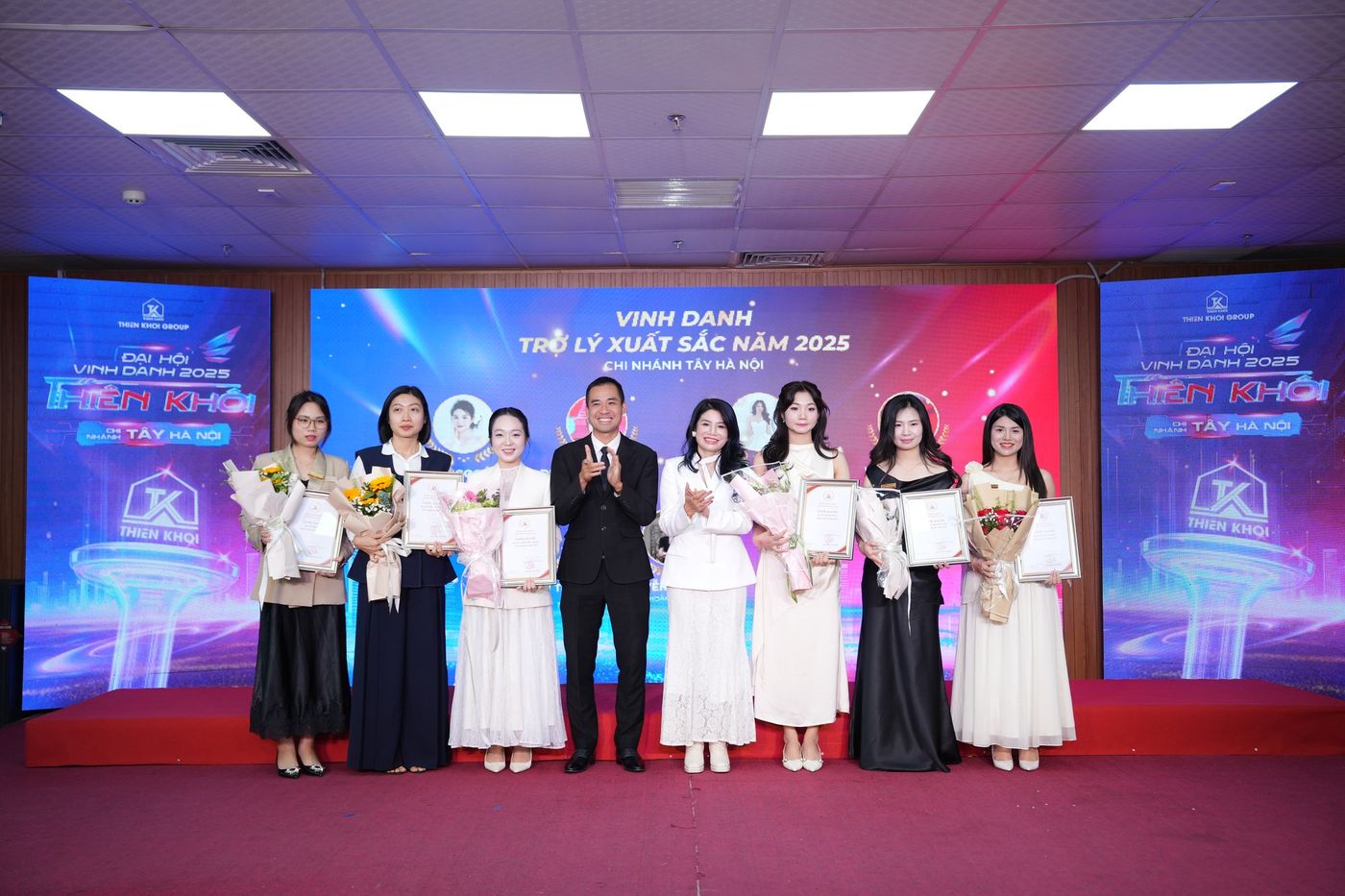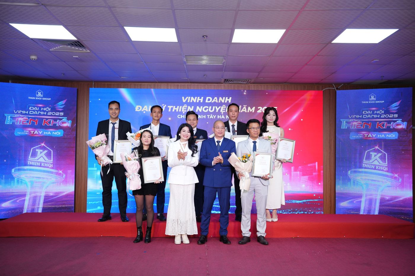 Trong năm 2025, Chi nhánh Tây Hà Nội ghi nhận nhiều kết quả tích cực trên hai phương diện: hiệu quả kinh doanh và công tác đầu tư. Những đóng góp ấy đã được tôn vinh tại Đại hội thông qua 7 hạng mục vinh danh, với 20 giải thưởng dành cho 137 cá nhân xuất sắc – những nhân tố xuất sắc góp phần tạo nên vị thế của Chi nhánh trong toàn hệ thống Thiên Khôi Group nói riêng và thị trường Bất động sản Thổ cư, Nhà phố trong khu vực.