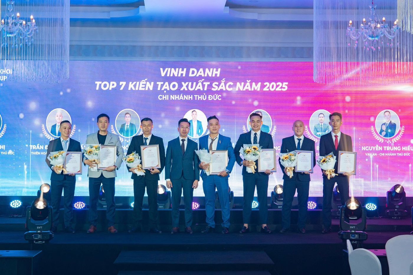 Khoảnh khắc đọng lại nhiều cảm xúc và tự hào nhất chính là phần vinh danh các cá nhân và tập thể xuất sắc. Với 3 hạng mục tiêu biểu cùng 12 giải thưởng danh giá được trao cho hơn 100 gương mặt tiêu biểu, mỗi cái tên được xướng lên không chỉ đại diện cho thành tích nổi bật, mà còn là biểu tượng của tinh thần kiên trì, ý chí vượt giới hạn và hiệu suất kinh doanh ấn tượng.