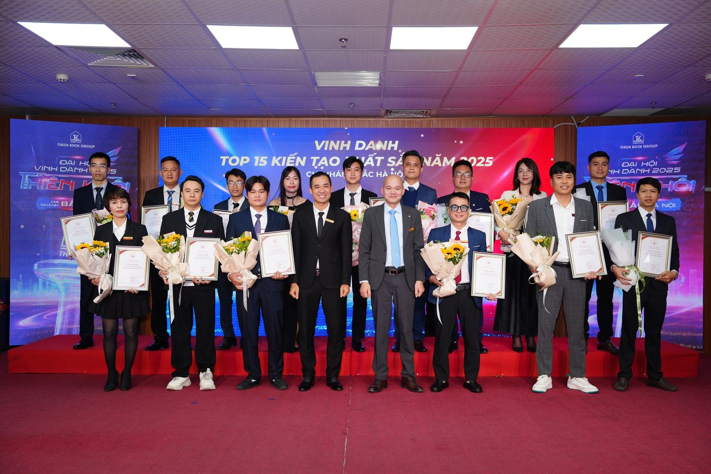 Những đóng góp trên đã được tôn vinh tại Đại hội thông qua 7 hạng mục vinh danh, với 20 giải thưởng dành cho 130 cá nhân xuất sắc – những nhân tố xuất sắc góp phần tạo nên vị thế của Chi nhánh trong toàn hệ thống Thiên Khôi Group nói riêng và thị trường Bất động sản Thổ cư, Nhà phố trong khu vực.