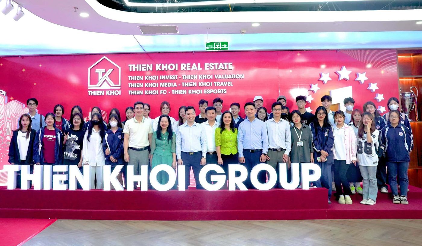 Các thầy cô, học viên cao học và sinh viên 3 khóa của Ngành Bất động sản - NEU đã được Ban Lãnh đạo Thiên Khôi Group đón tiếp nồng nhiệt. Tại chuyến trải nghiệm, các bạn sinh viên đã được tham quan văn phòng hiện đại và năng động của Tập đoàn; được nghe những chia sẻ chân thực và truyền cảm hứng từ Chủ tịch Thiên Khôi Group- Ông Nguyễn Thành Dũng, cũng như được giải đáp những thắc mắc làm sao để có thể thành công trong lĩnh vực Bất động sản và làm sao để vận hành một doanh nghiệp có quy mô như vậy.
