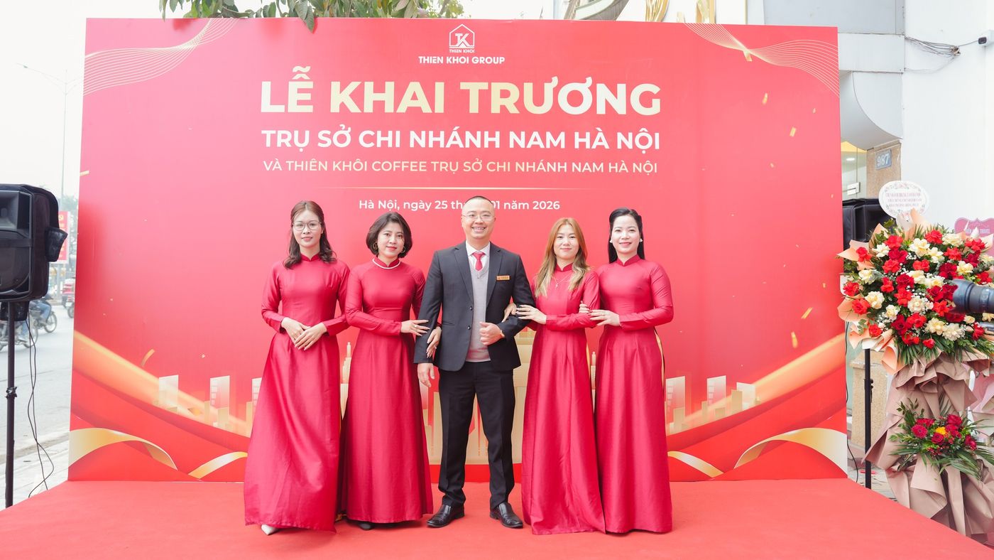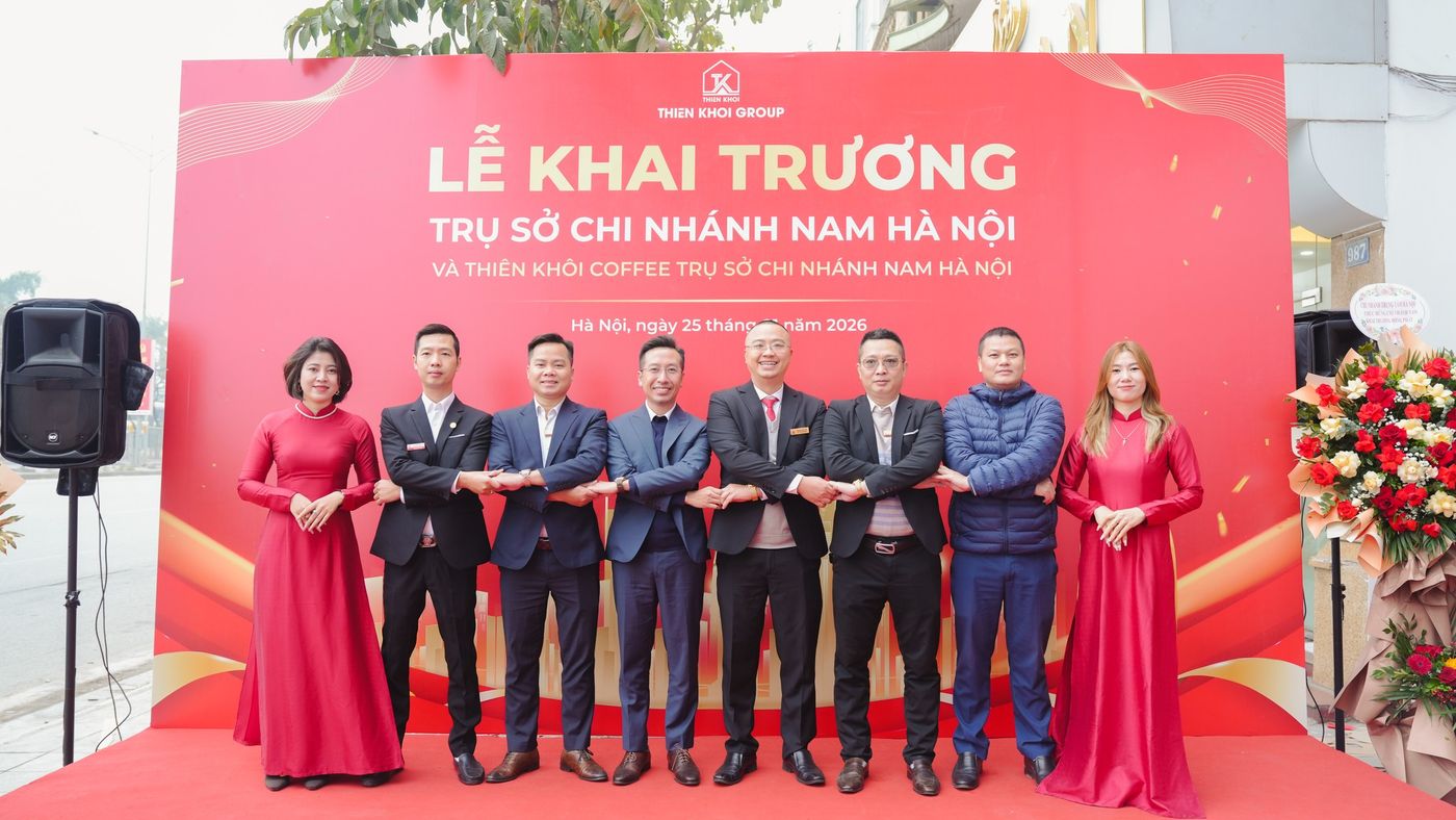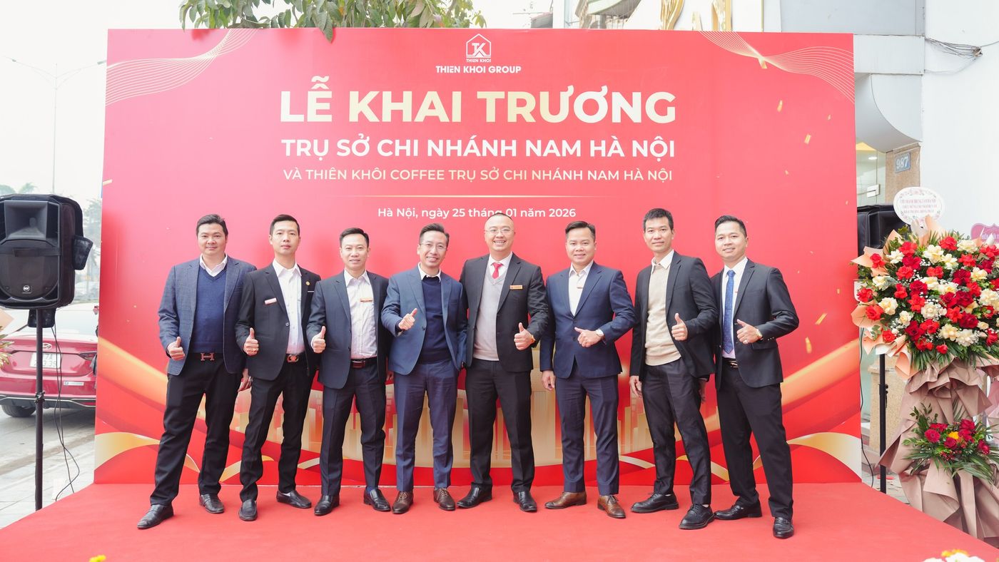 Sáng ngày 25/01/2026, tại 989 Giải Phóng (Hoàng Mai, Hà Nội), Thiên Khôi Group chính thức khai trương trụ sở Chi nhánh Nam Hà Nội, với sự tham dự của Ban Lãnh đạo, đội ngũ Nhà Môi giới, Nhà Đầu tư và các đối tác đồng hành. Sự kiện đánh dấu bước mở rộng quan trọng trong chiến lược phát triển hệ sinh thái Công nghệ – Bất động sản tại khu vực phía Nam Thủ đô.