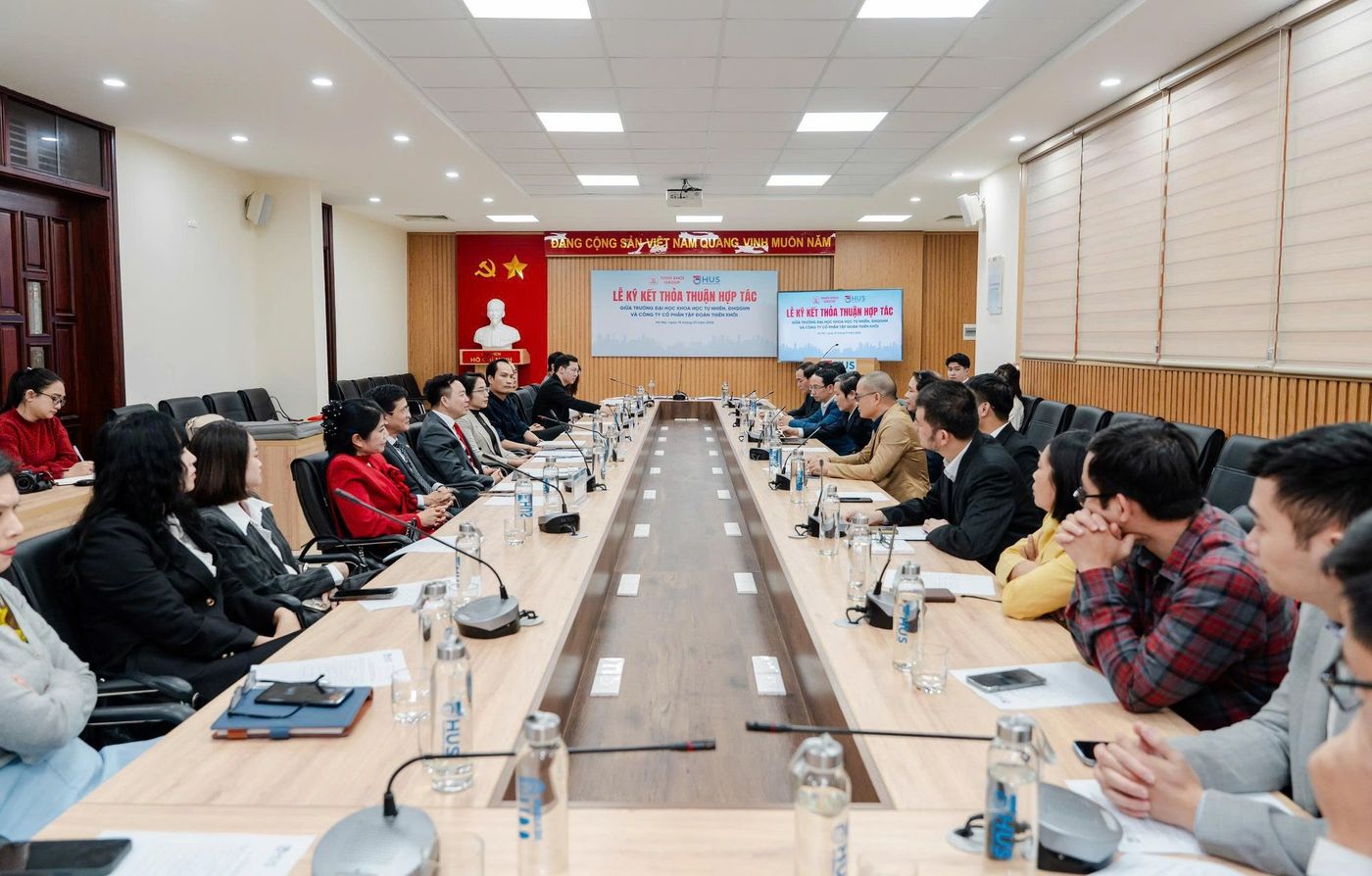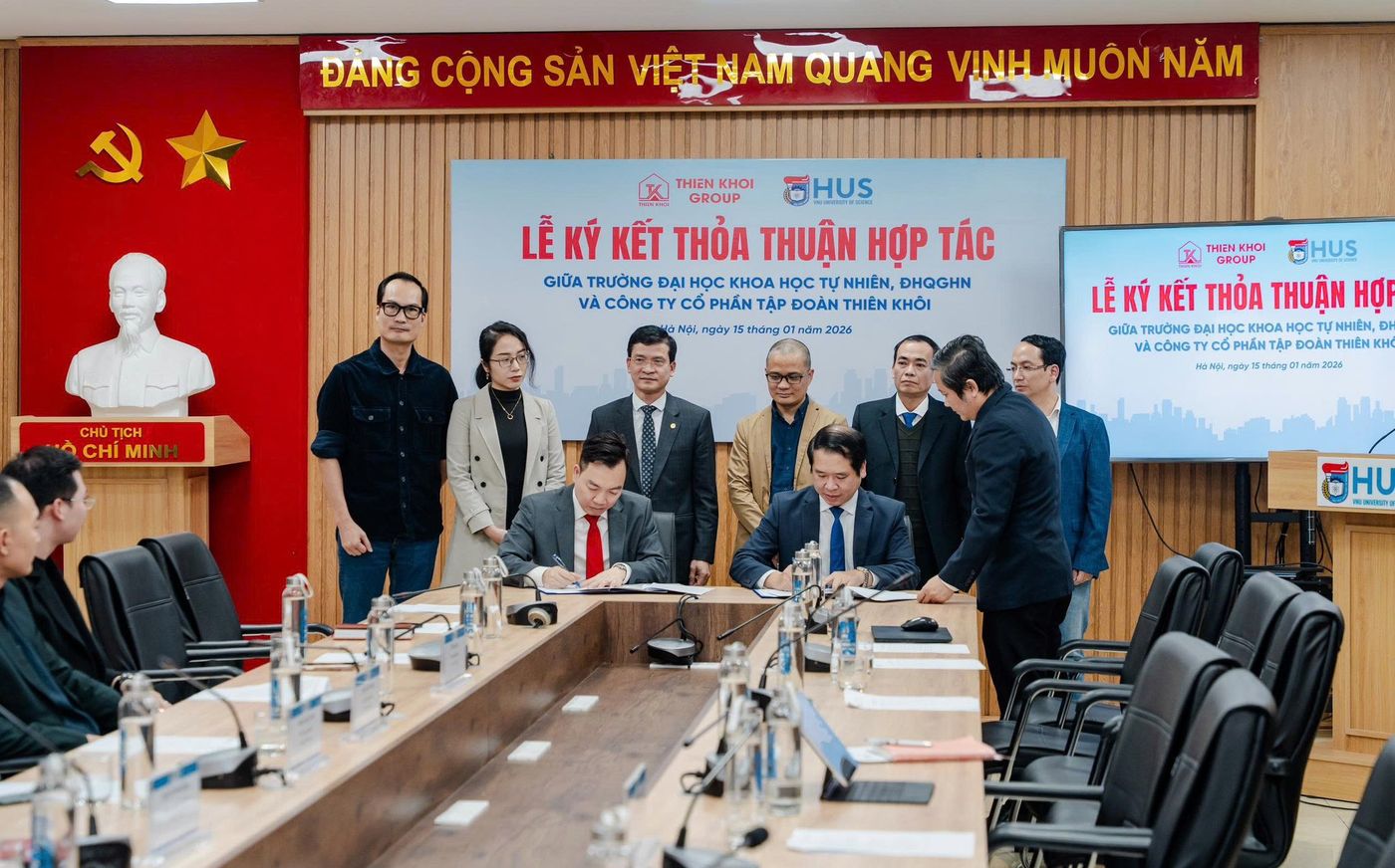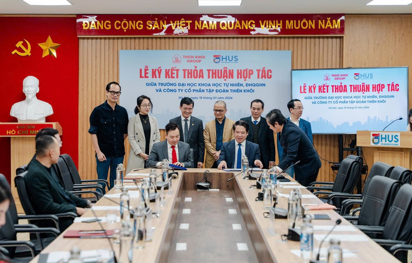 Ngày 15/01/2026, tại Trường Đại học Khoa học Tự nhiên – Đại học Quốc gia Hà Nội đã diễn ra Lễ ký kết Thỏa thuận hợp tác giữa Trường Đại học Khoa học Tự nhiên, ĐHQGHN và Công ty cổ phần Tập đoàn Thiên Khôi (Thiên Khôi Group), sự kiện đánh dấu bước phát triển mới trong mối quan hệ hợp tác giữa Nhà trường và Doanh nghiệp, hướng tới đào tạo nguồn nhân lực chất lượng cao, đẩy mạnh nghiên cứu khoa học, công nghệ và ứng dụng các kết quả nghiên cứu vào thực tiễn.